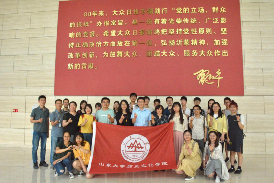 历史文化学院组织师生到大众传媒大厦参观考察并与齐鲁晚报·齐鲁壹点座谈交流。本次活动既是学院实践育人活动,又是学院机关党支部“关注媒体融合·提升媒介素养”主题党日活动。院学生会和研究生会负责采编宣传与新媒体运营的学生骨干、文化产业管理等专业师生代表,以及学院机关党支部党员参加了这次活动。