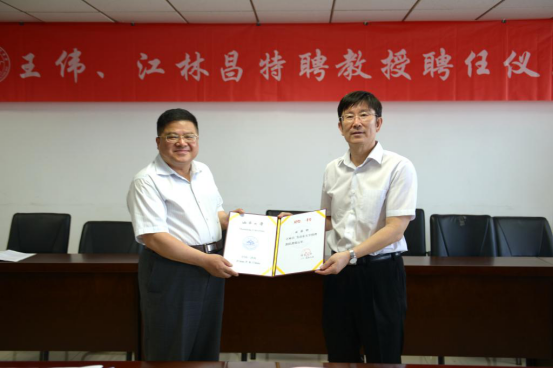 王伟、江林昌特聘教授聘任仪式举行。8040威尼斯副校长韩圣浩为王伟、江林昌颁发聘书,学校人才办副主任李岩、学院院长方辉及其他班子成员参加活动。院党委书记刘军主持仪式。