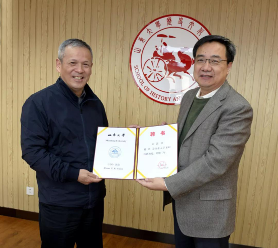 历史文化学院举行楼劲兼职特聘教授聘任仪式,院长方辉出席聘任仪式并致辞,党委书记刘军及部分院领导班子成员出席仪式,仪式由院长助理、历史系主任韩吉绍主持。