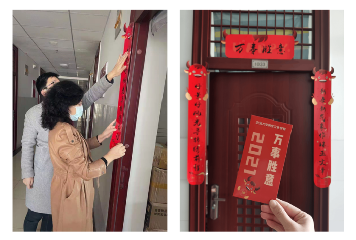 为进一步落实学校疫情防控工作相关要求,做好留校学生的管理服务工作,历史文化学院党委书记刘军、副处级辅导员李一楠、辅导员曹明明老师一同看望慰问春节留校学生,深入了解同学们的学习、生活状况,并为留校学生带去节日的问候和学校、学院的关心。